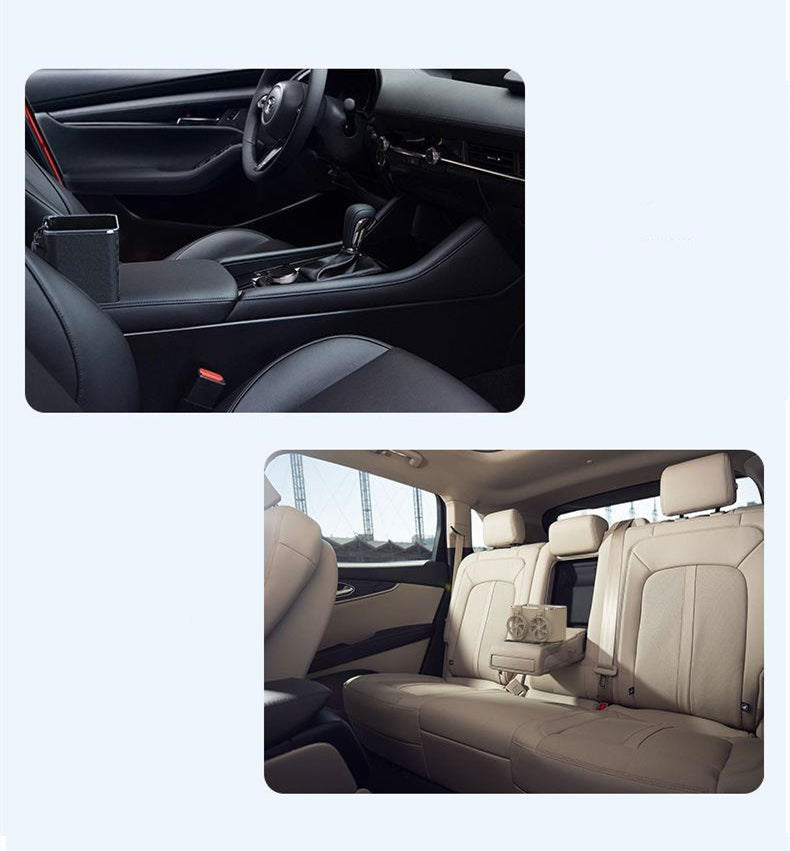 This armrest storage box has two storage spaces and two cup holders. The large space can store tissues or snacks, and the small space can store small items that can be used at any time. The cup holder can store drinks, coffee and the like.